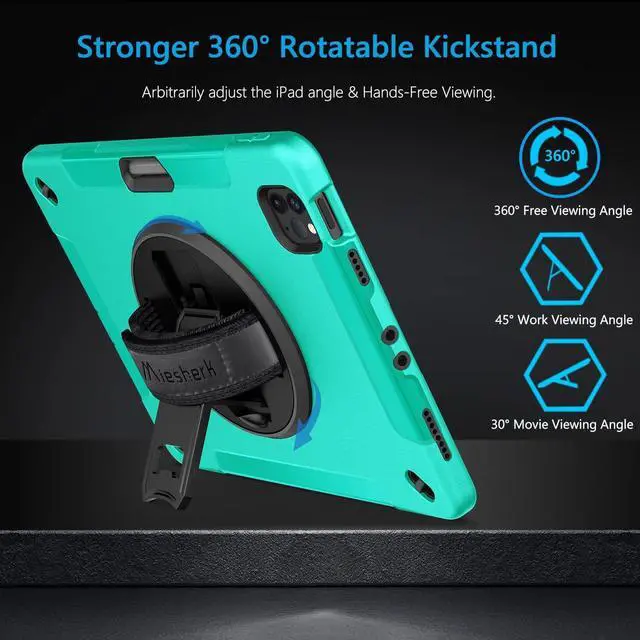 STABLE ROTATABLE KICKSTAND & ADJUSTABLE HANDHELD: 360° rotating foldable stand provides multiple angles(30°/45°/60°), nice to view, typing, or draw.Precise cutout perfectly aligns up to ports, controls to easily access all iPad functions.