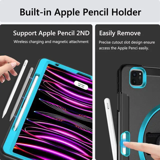BUILT-IN APPLE PENCIL HOLDER & DETAILED CRAFTING: Support Apple Pencil wireless charging and magnetic attachment feature, unique slot pen holder design ensure easily store and remove Apple Pencil. Precise cutout perfectly aligns up to ports, controls to easily access all iPad functions.