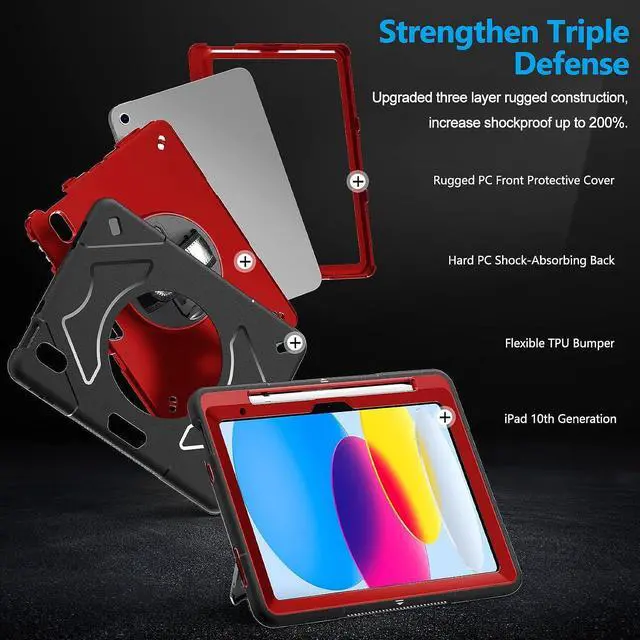 ENHANCED FULL-BODY PROTECTION &10-SHOCK: Case for iPad 10th gen exceed 2X Military Grade Drop Test Standard [MIL-STD 810G-516.6], Triple full-body heavy-duty protection provides up to 15ft drop protection, made of 2 durable PC and 1 flexible TPU bumper lasts 10× shock-resistant. Upgrade built-in sponge technology adds extra heat-dissipation.