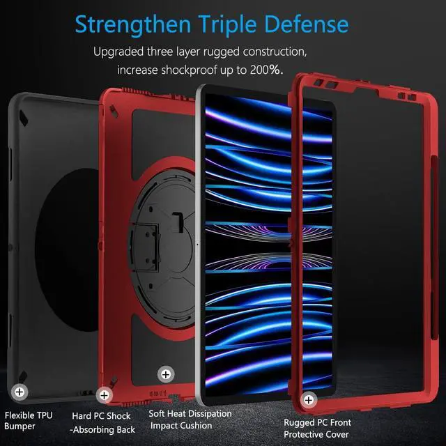 ENHANCED PROTECTION &10-SHOCK: Case for iPad Pro 11 Inch Certified [MIL-STD 810G-516.6] protection with 15ft drop tested. All-new built-in sponge technology adds extra heat-dissipation. Upgrade triple construction rugged defense armor protection cover is made of durable PC back and soft flexible TPU bumper lasts 10× shock-resistant.