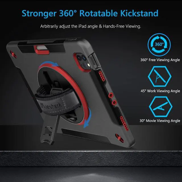 STABLE ROTATABLE KICKSTAND & ADJUSTABLE HANDHELD: 360° rotating foldable stand provides multiple angles(30°/45°/60°), nice to view, typing, or draw.Precise cutout perfectly aligns up to ports, controls to easily access all iPad functions.