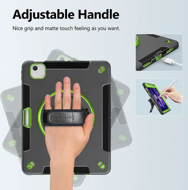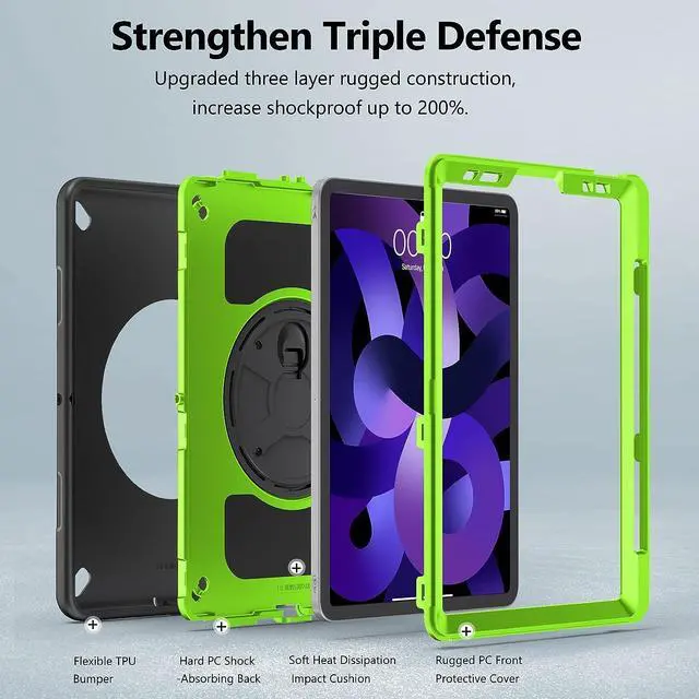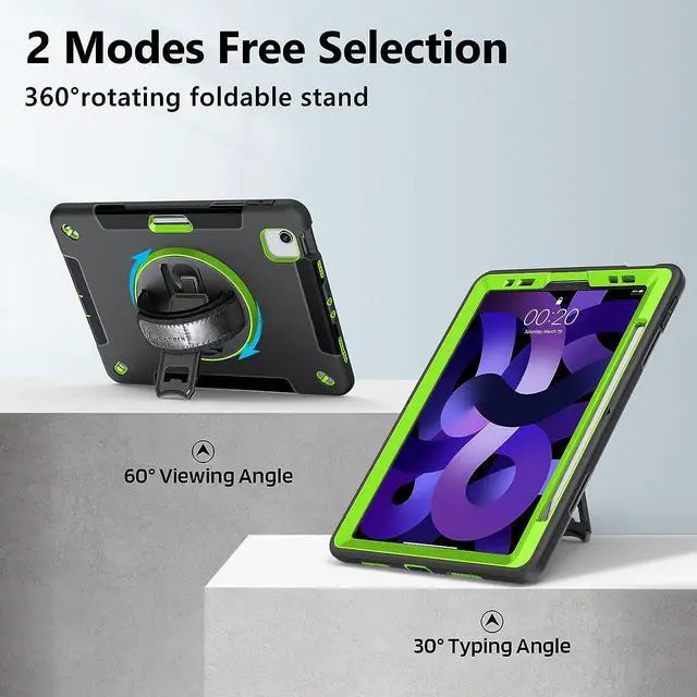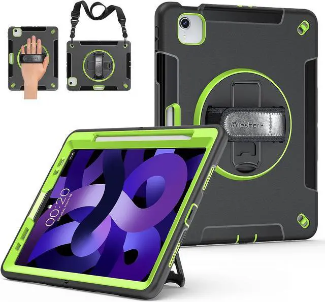 Case for iPad Air 5th Generation Case: Compatible with iPad Air 5 Case 2022 Heavy Duty Shockproof Protective Cover-Pencil Holder-Rotating Stand-Hand/Shoulder Strap for iPad 10.9 2020 Green