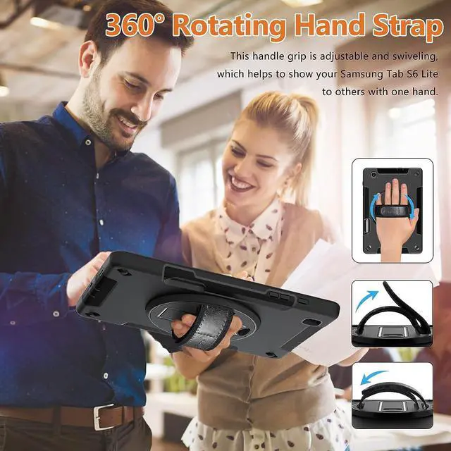 360 Degree Rotatable Kickstand and Hand Strap: The 360° rotating foldable kickstand offers multiple angles(30°/45°/60°) for watching movies, playing games, or typing and drawing. This handle grip is adjustable and swiveling, which helps to show your Samsung Tab S6 Lite to others with one hand during work, study, or travel, very suitable for students, teachers, engineers, and more users.