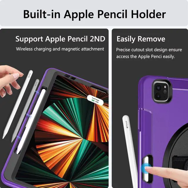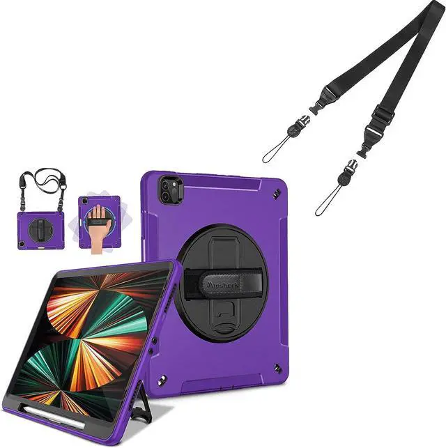 Case for iPad Pro 12.9 2021 5th Generation Purple + Adjustable Replacement iPad Shoulder Strap - Get 2