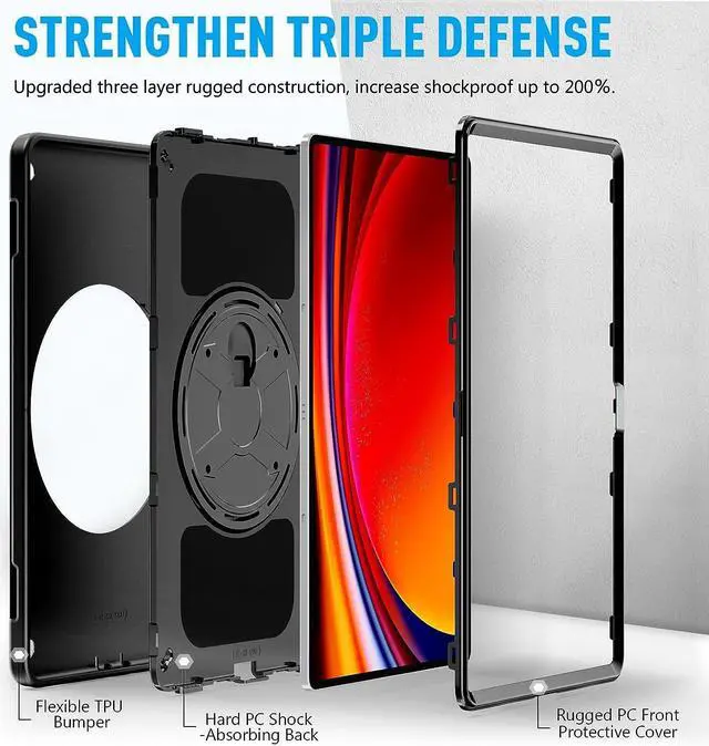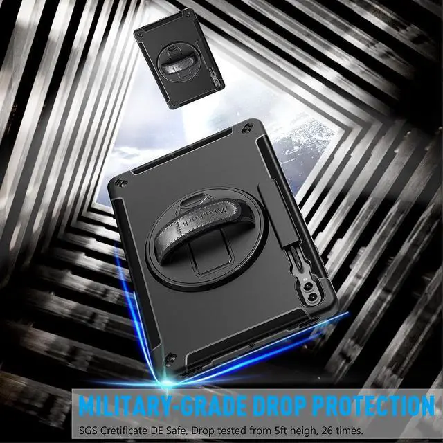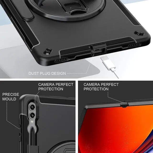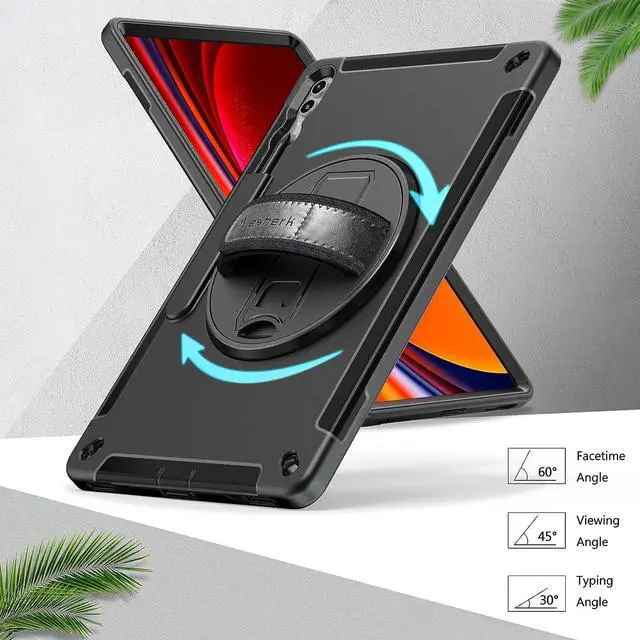 360 Degree Rotatable Kickstand and Hand Strap: The 360° rotating foldable kickstand offers multiple angles(30°/45°/60°) for watching movies, playing games, or typing and drawing. This handle grip is adjustable and swiveling, which helps to show your Tab S9 Ultra to others with one hand during work, study, or travel, very suitable for students, teachers, engineers, and more users.