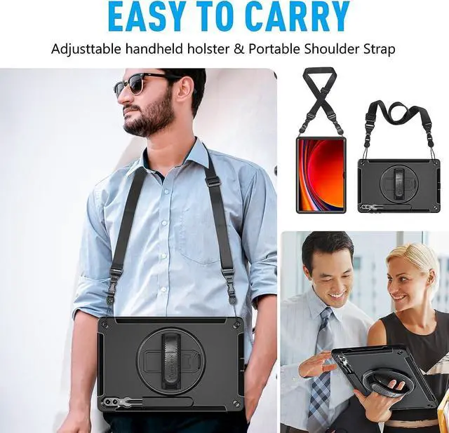 Adjustable and Detachable Shoulder Strap: The portable and adjustable shoulder strap can help you carry your Galaxy Tab S9 Ultra more securely during hiking, traveling other outdoor activities.[Miesherk provides 365 days warranty and after-sales service]