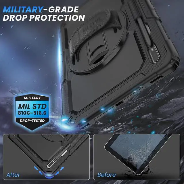 Enhanced Full-Body Protection: Advanced 3-in-1 construction, high-quality PC and shock-absorbing TPU material, durable military-grade shock-proof case can effectively prevent accidental drops, bumps, slips and scratches on your tablet to keep your tablet still like New.