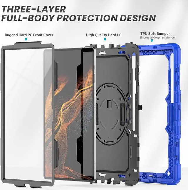 Built-in S-pen Holder & Precise Cutout: Precise cutout design fits your for Samsung Galaxy Tab S8 Ultra perfectly, and easy to achieve all the functions. The Samsung Galaxy Tab S8 Ultra case features with S-pen holder (S Pen Not Included), easy to carry and use. It allows you to place the S Pen anytime you need and protects it well.