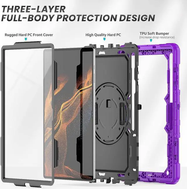 Built-in S-pen Holder & Precise Cutout: Precise cutout design fits your for Samsung Galaxy Tab S8 Ultra perfectly, and easy to achieve all the functions. The Samsung Galaxy Tab S8 Ultra case features with S-pen holder (S Pen Not Included), easy to carry and use. It allows you to place the S Pen anytime you need and protects it well.