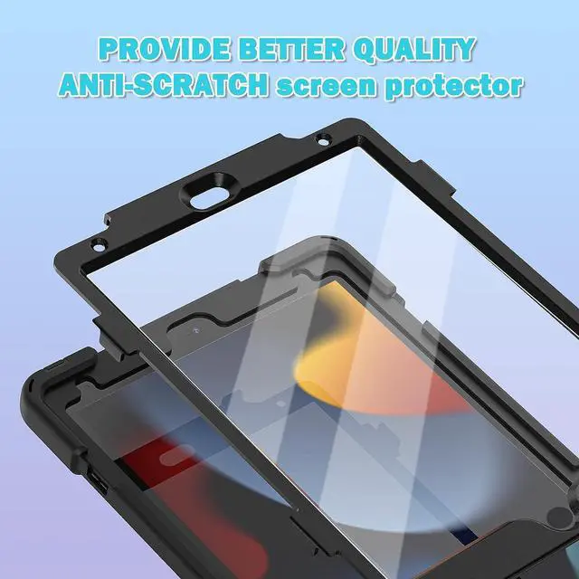 Full Body Protection Three layer structure design with built-in transparent screen protector provides a full around protection against scratch,impacts and shock during daily use. Built-in Apple Pencil Holder and Apple Pencil Cap Holder offer a safe way to store your iPad Pencil while using our case.