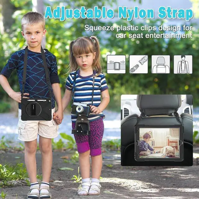 Adjustable & Detachable Carrying Strap Portable Shoulder Strap allows to carry your iPad in landscape/portrait mode securely in outdoors or hang your iPad in kitchen,bedroom,car seat for convenient usage.