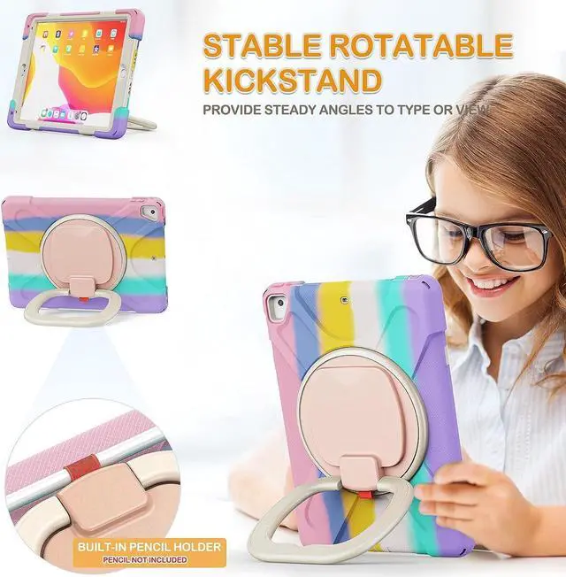 Multi-Function Features: 360°rotating +180°folding Grip can be used as a handle, easy to hang your iPad in kitchen, washroom, bedroom; Kickstand is stable enough to stand on different surfaces for children to view. And with a adjustable shoulder strap, it is convenient for you to carry and hang everywhere.