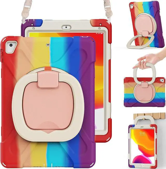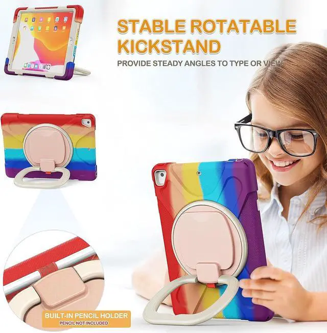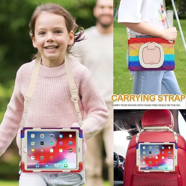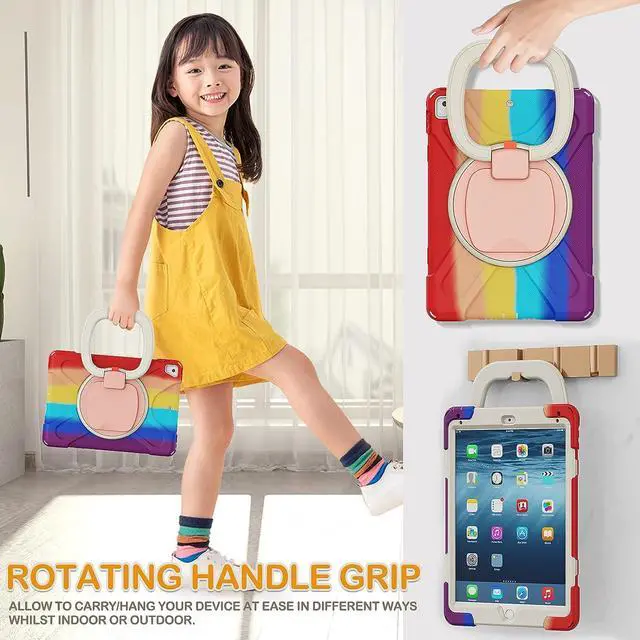 Multi-Function Features: 360°rotating +180°folding Grip can be used as a handle, easy to hang your iPad in kitchen, washroom, bedroom; Kickstand is stable enough to stand on different surfaces for children to view. And with a adjustable shoulder strap, it is convenient for you to carry and hang everywhere.