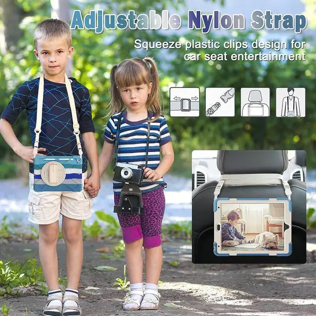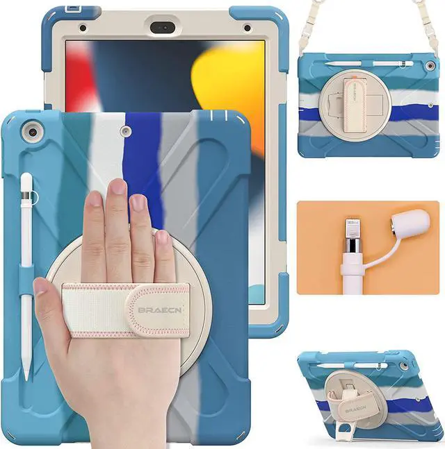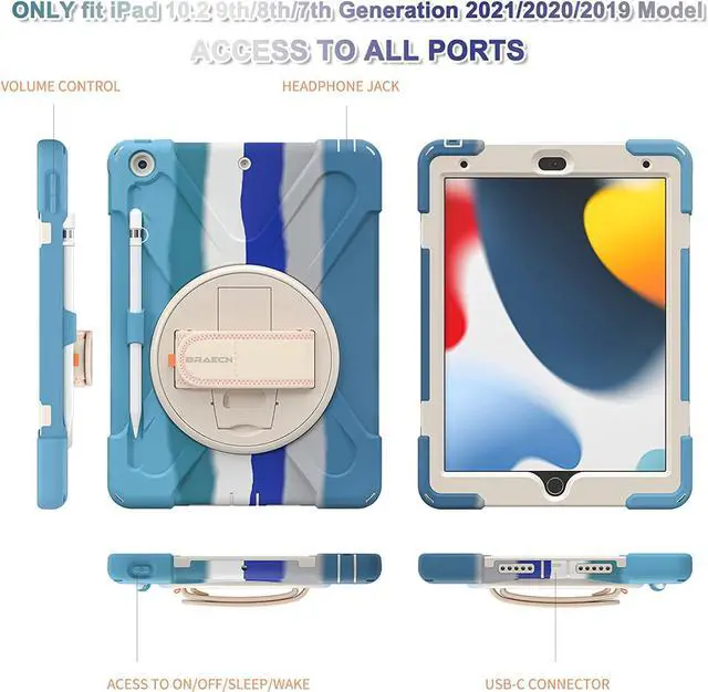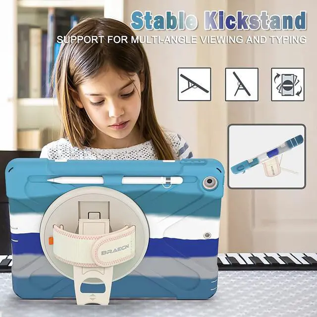 Built-in 360 degree rotating kickstand and adjustable hand strap provide a more flexible and convenient way to use your iPad 10.2/ iPad 10.5, ideal for boys,girls,children.
