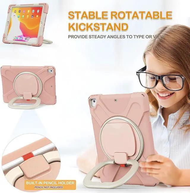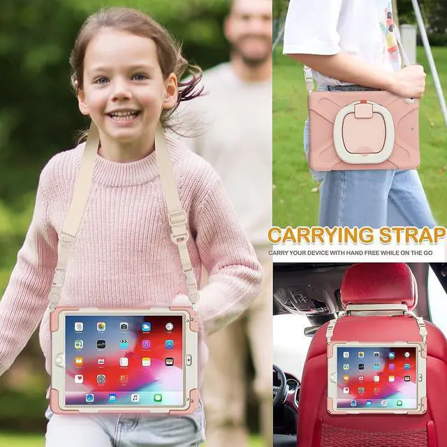 Multi-Function Features: 360°rotating +180°folding Grip can be used as a handle, easy to hang your iPad in kitchen, washroom, bedroom; Kickstand is stable enough to stand on different surfaces for children to view. And with a adjustable shoulder strap, it is convenient for you to carry and hang everywhere.