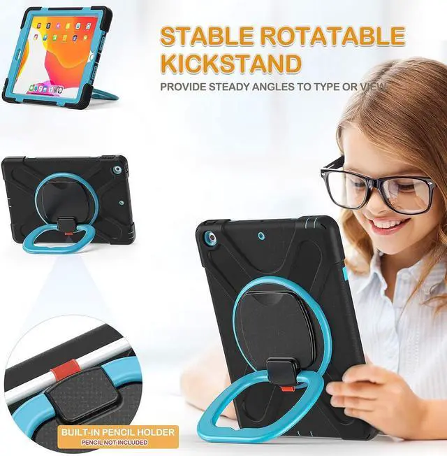 360 Degree Rotatable Stable Kickstand offer different angles (type or view) to display your iPad 10.2 2021/2020/2019 steadily.