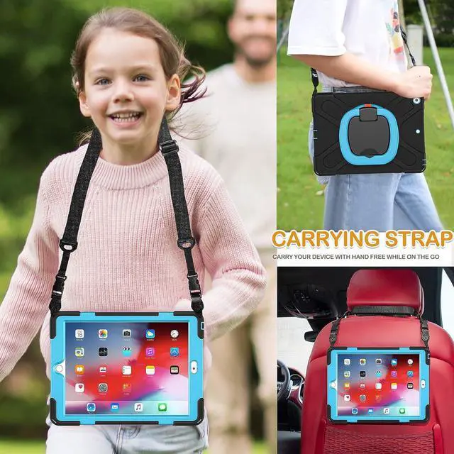 Adjustable Carrying Shoulder Strap allows you to carry your iPad 9th/8th/7th Gen with hand free; Built-in Pencil Holder and Pencil Cap Holder will store your iPad Pencil securely with our case on. APPLE PENCIL IS NOT INCLUDED.