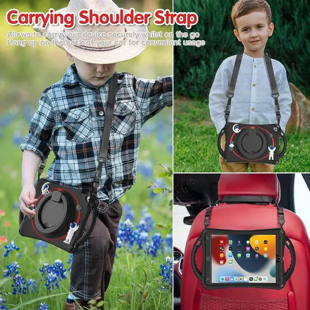 REMOVABLE & ADJUSTABLE CARRYING STRAP- Portable Shoulder Strap allows to carry your iPad 9th Gen Case conveniently when you are at work, on a trip or outdoors. You could even hang it behind the head rest of car seat or wherever you want.