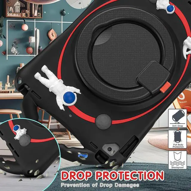 FULL BODY PROTECTION- Made of non-toxic and kids-friendly soft silicone material. Has a cute 3D cute astronauts spaceman pattern appearance design while providing full body protection prevent from drops, shocks, bumps, scratches and dirt. No worry your iPad would slip out of your kids' hands and break. Full access to all ports, buttons and cameras without removing the case.