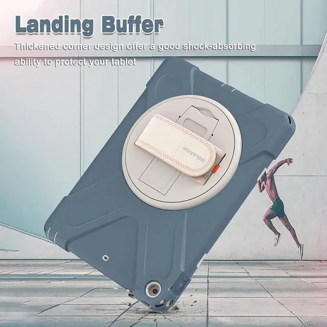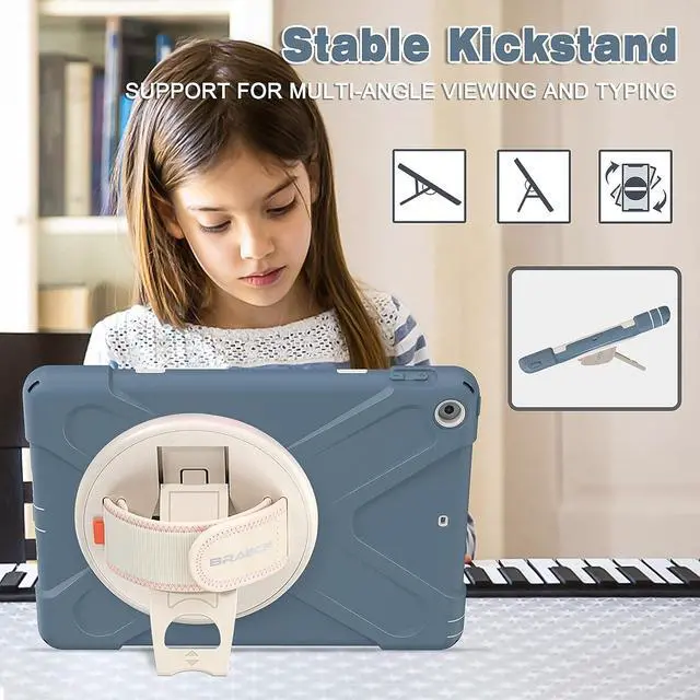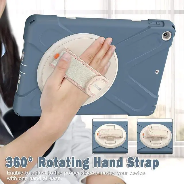 360 Degree Swivel Stand & Hand StrapLocated on the back of Galaxy Tab S6 heavy duty cases,built-in 360 degree rotating kickstand and adjustable handle hand strap provides a more flexible and convenient way to use your tablet during work, study or journey, ideal for students,teachers,engineers,cashiers and waiters,etc.