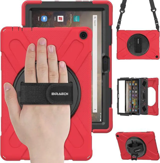[Versatility] Located on the back of fire hd 10 kids case,built-in 360 Degree rotating kickstand and adjustable handle hand grip provide a flexible and comfortable way to use your tablet for outdoor work