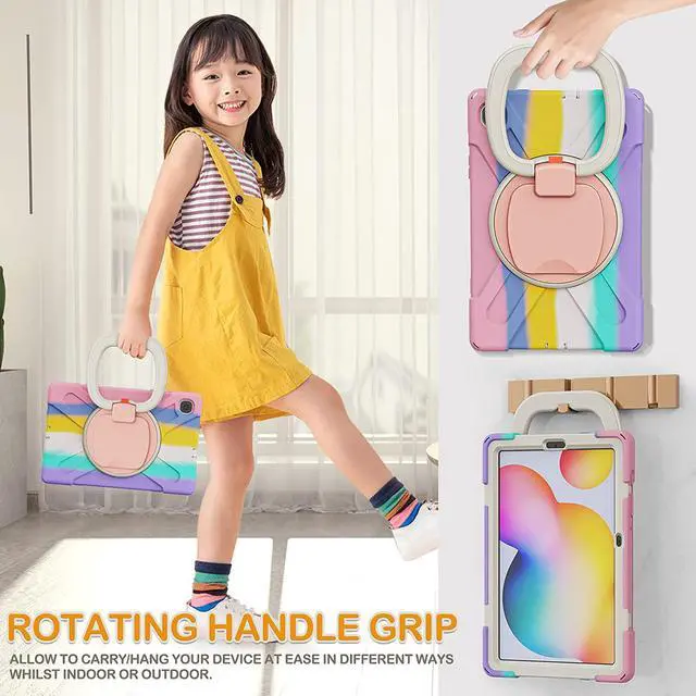 Case for Galaxy Tab S6 Lite 10.4" 2022/2020-Heavy Duty Silicone Cover with Pen Holder, Stable Kickstand, Handle Grip, Shoulder Strap for Galaxy Tab S6 Lite SM-P610/P613/P615/P619-Colorful Pink