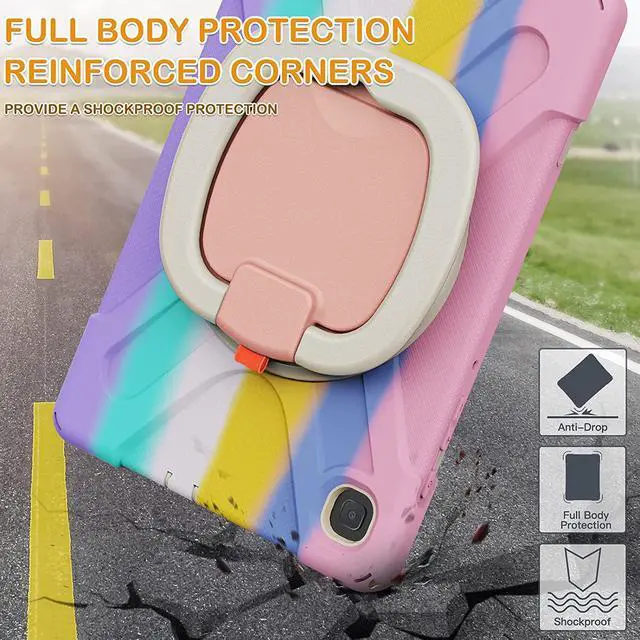 [Multi-Function Features] 360°rotating +180°folding Grip can be used as a handle, easy to hang your Tablet in kitchen, washroom, bedroom; Kickstand is stable enough to stand on different surfaces for children to view. And with a adjustable shoulder strap, it is convenient for you to carry and hang everywhere.