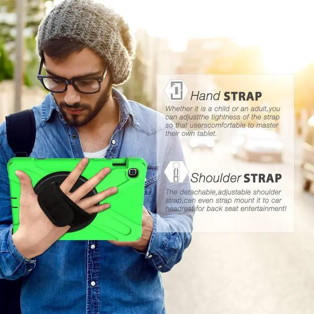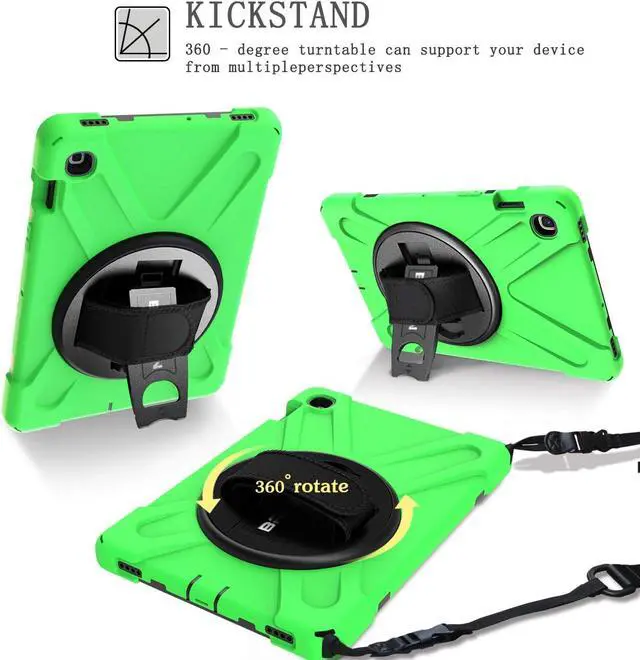 [Versatility] Located on the back of Samsung Galaxy Tab S5e 2019 case,built-in 360 Degree rotating kickstand and adjustable handle hand grip provide a flexible and comfortable way to use your tablet for outdoor work.