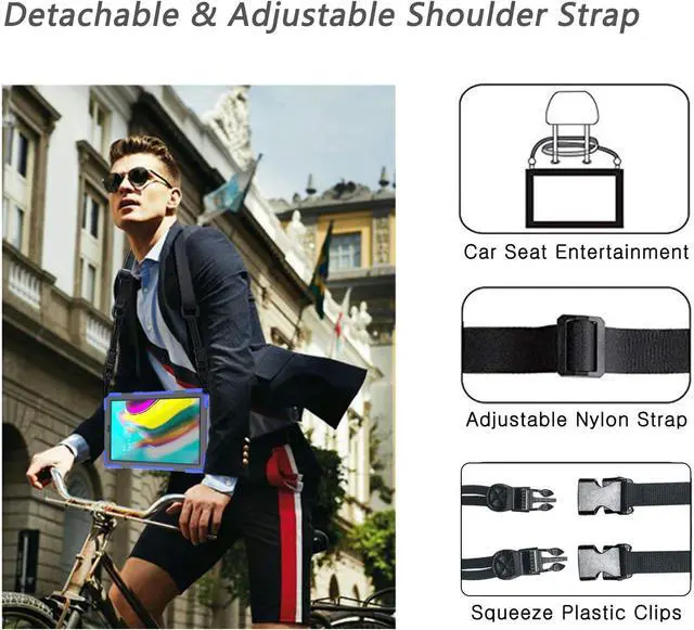 [Flexible Shoulder Strap] By attaching strap to any two holes and adjusting to a convenient length, your Galaxy Tab S5e 10.5 Case 2019 can be carried vertically or horizontally in a more secure way during any outdoor activities.