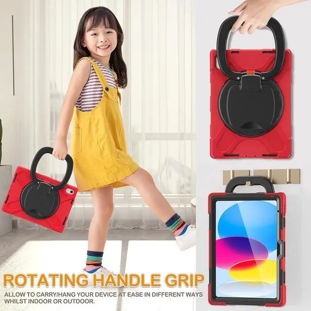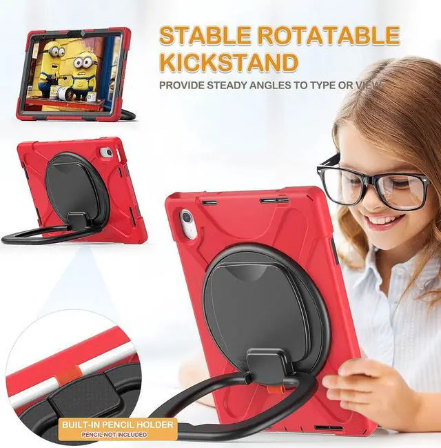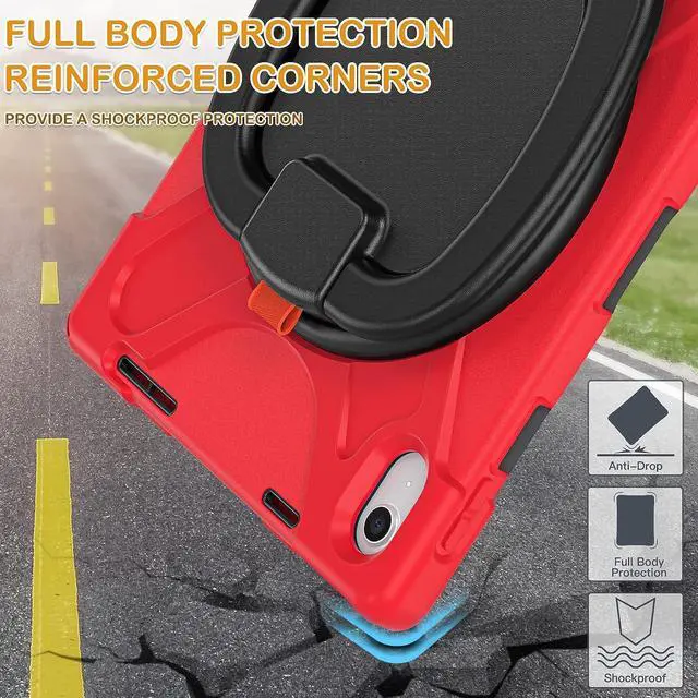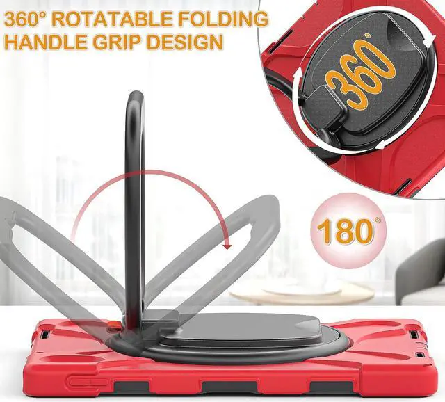 360 Degree Swivel Stand & Hand StrapLocated on the back of Galaxy Tab S6 heavy duty cases,built-in 360 degree rotating kickstand and adjustable handle hand strap provides a more flexible and convenient way to use your tablet during work, study or journey, ideal for students,teachers,engineers,cashiers and waiters,etc.