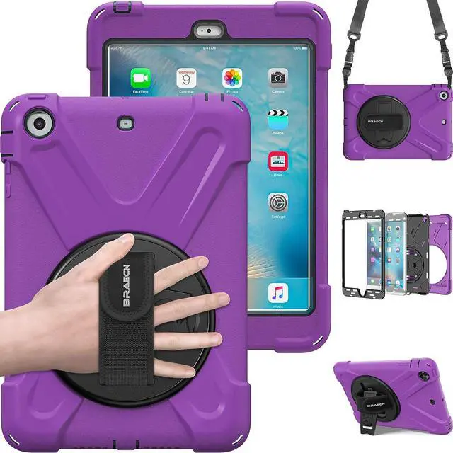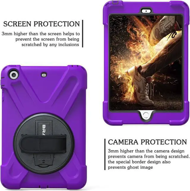 [360 Degrees Rotatable Kickstand & Adjustable Hand Strap] Built-in stand offers optimum position for typing or viewing; Ergonomic and comfortable back handle allows you to grip your iPad Mini 3rd/ 2nd/ 1 st Gen tablet securely and steadily with one hand, worry-free from dropping it. Ideal for kids, students, teachers or anyone else who needs it for presentations, conferences and travelling.