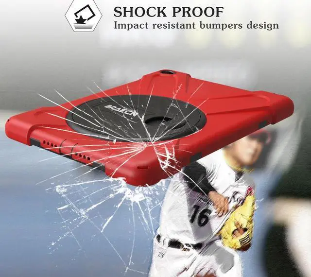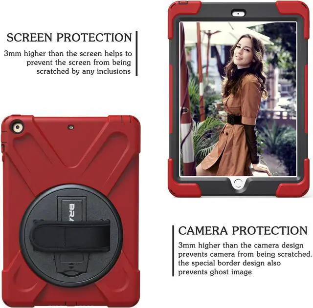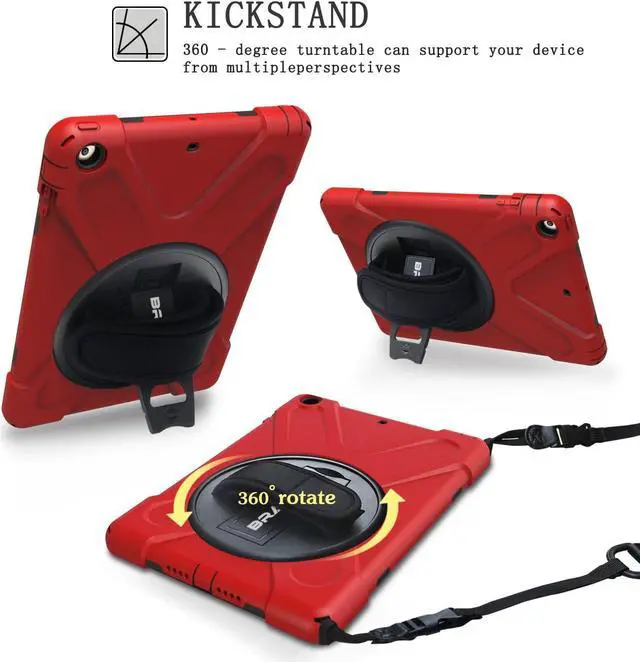 [360 Degrees Rotatable Kickstand & Adjustable Hand Strap] Built-in stand offers optimum position for typing or viewing; Ergonomic and comfortable back handle allows you to grip your iPad securely and steadily with one hand, worry-free from dropping it. Ideal for kids, students, teachers or anyone else who needs it for presentations, conferences and travelling.