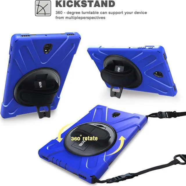 [Versatility] Located on the back of Samsung Galaxy Tab S4 protective case,built-in 360 Degree rotating Kickstand and Adjustable Hand Grip provide a flexible and comfortable way to use your tablet during work or study ideal for students,teachers,engineer.