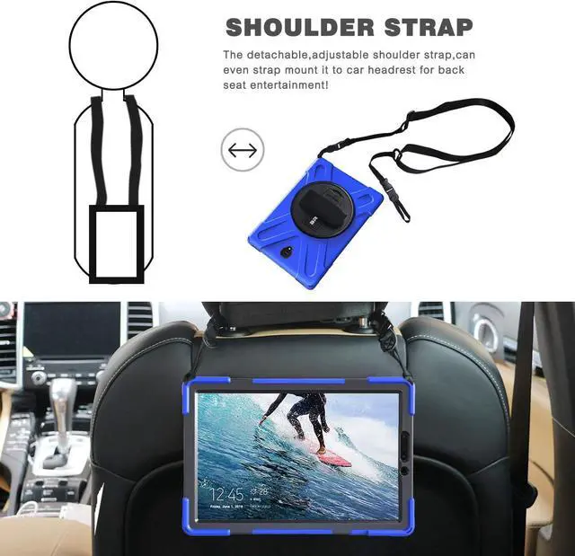 [Flexible Nylon Shoulder Strap] With the attachable shoulder strap,your tablet can be carried vertivally or horizontally in a more secure way during hiking, traveling or other outdoor activities. Also allows you to hang up your tablet behind car seat for iPad entertainment for kids.