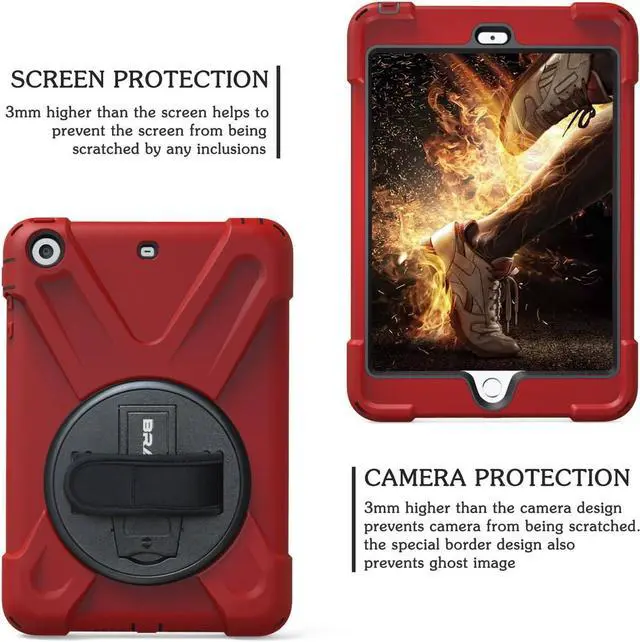 [360 Degrees Rotatable Kickstand & Adjustable Hand Strap] Built-in stand offers optimum position for typing or viewing; Ergonomic and comfortable back handle allows you to grip your iPad Mini 3rd/ 2nd/ 1 st Gen tablet securely and steadily with one hand, worry-free from dropping it. Ideal for kids, students, teachers or anyone else who needs it for presentations, conferences and travelling.