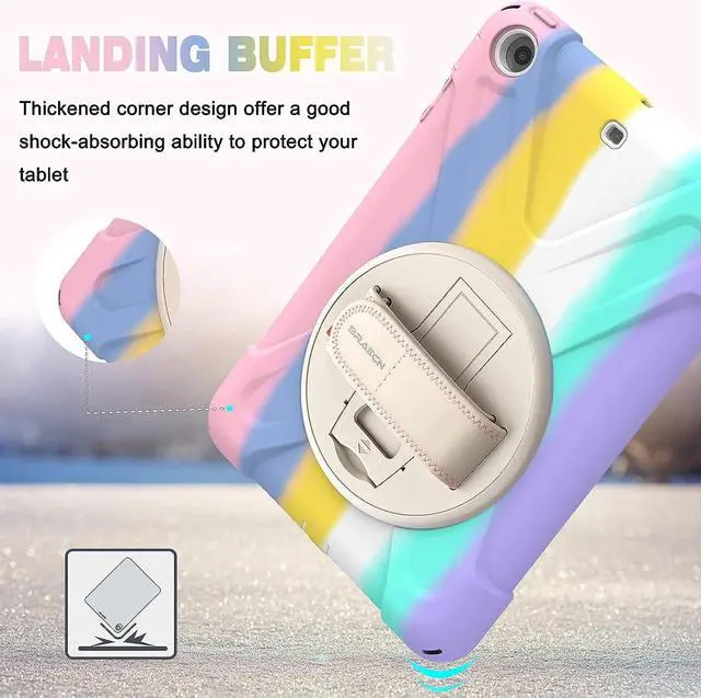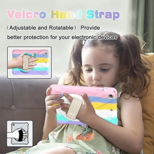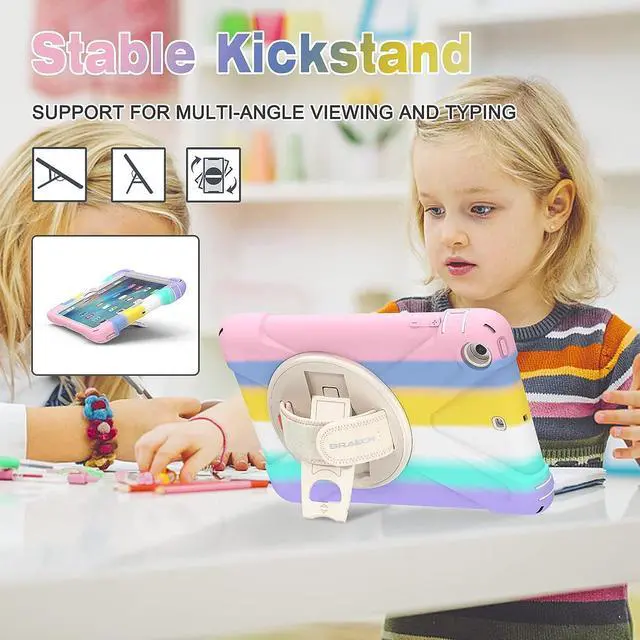 [360 degrees rotatable kickstand & The adjustable hand strap ]mechanism for better experience with your iPad.Ideal for kids, students, teachers or anyone else who needs it for presentations, conferences and travelling.