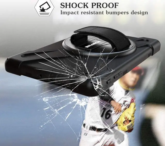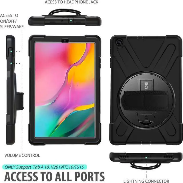 [Versatility] Located on the back of Samsung Galaxy Tab A 10.1 2019 case,built-in 360 Degree rotating Kickstand and Adjustable Handle Hand Grip provide a flexible and comfortable way to use your tablet for outdoor work.