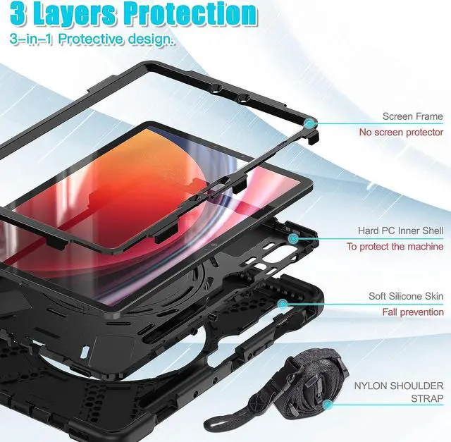 PROTECTION: Made of kid-friendly, non-toxic and shock absorbing silicone, its three layer structure design provide a good full body protection from drop bumps, and shock. Prevents scratches without sacrificing sensitivity or visibility. Shock&dust proof, enhance drop protection, increase shock absorption effect. PLEASE NOTE S PEN AND SCREEN PROTECTOR IS NOT INCLUDED.