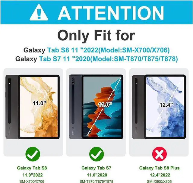 Compatibility: Compatible for Samsung Galaxy Tab S8 11 Inch 2022 Release (Model : SM-X700/SM-X706), Samsung Galaxy Tab S7 11 Inch 2020 Release (Model : SM-T870/SM-T875), can not fit any other model.