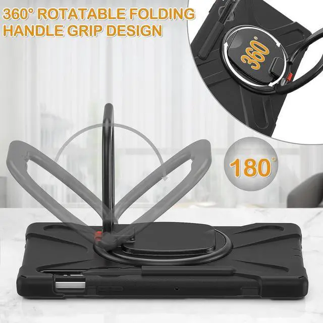 Multi-Function Features: 360°rotating +180°folding Grip can be used as a handle, easy to hang your Tablet in kitchen, washroom, bedroom; Kickstand is stable enough to stand on different surfaces for children to view. And with a adjustable shoulder strap, it is convenient for you to carry and hang everywhere.
