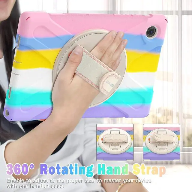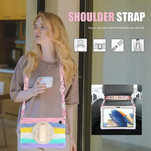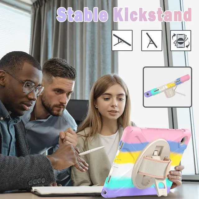 360° Swiveling Stand & Hand Strap Located on the back of Galaxy Tab A8 10.5 shockproof case 2022, built-in 360 degree rotating kickstand and adjustable handle hand strap provides a more flexible and convenient way to use your tablet during work, study or journey, ideal for kids,students,teachers,cashiers and waiters,etc