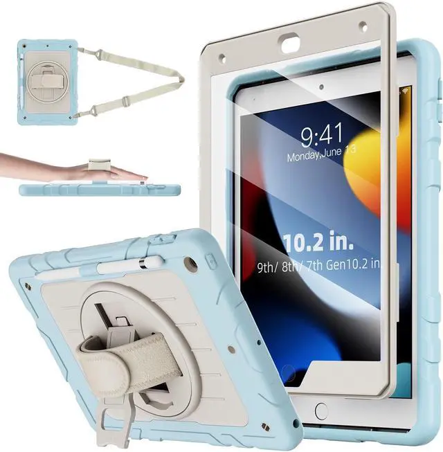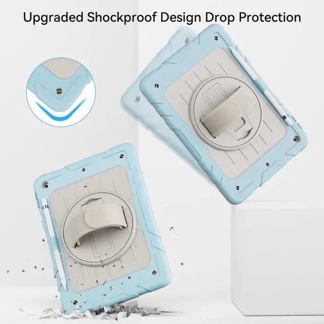 360°Rotating Kickstand & Hand StrapRotatable kickstand easily support your iPad in multi-angle viewing. Moreover,the soft hand strap allows you to hold your iPad firmly and comfortably to prevent accidental drops.And your kids can use iPad easily and safely to study or watch movies.