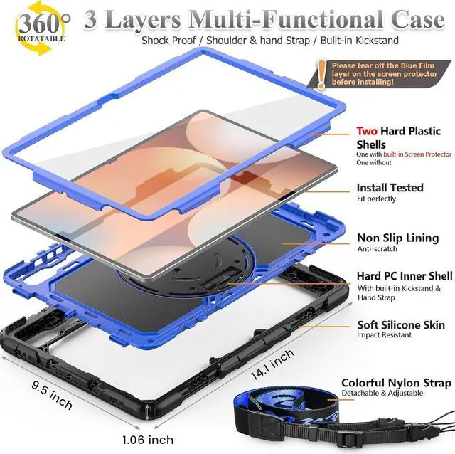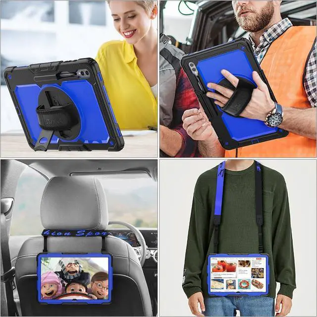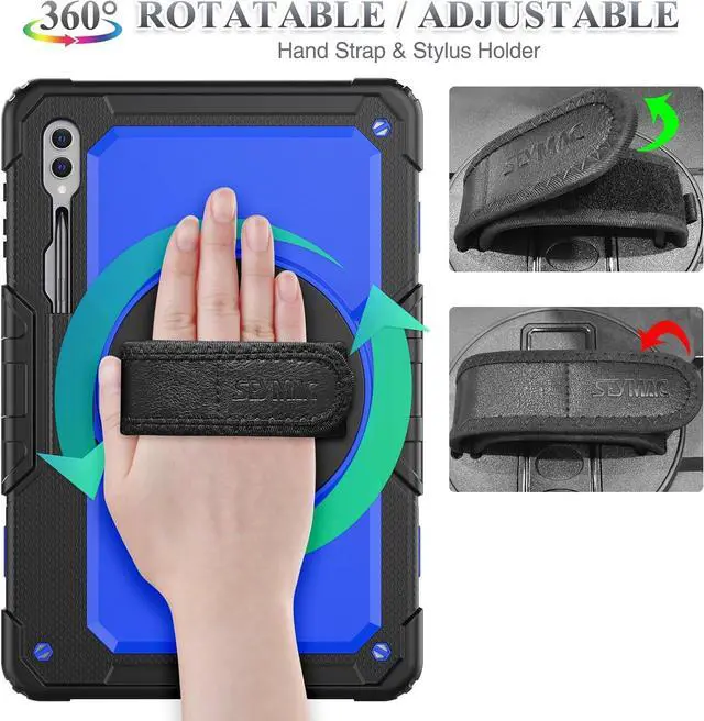 Soft Hand Strap & Portable Shoulder Strap & Rotating Stand: Provide the protection and convenience when you play or work with Galaxy Tab S9 Ultra 5G, Hang it anywhere for your entertainment, makes your hands free. 360 Degrees rotating Kickstand provides multi-angle viewing, with soft hand strap, easy to use your S9 Ultra Tablet while outdoor travelling, working,gaming with kids.