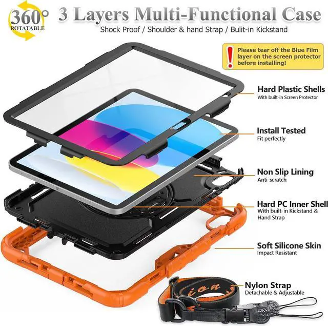 Material: The Pad Mini 6th generation case is made from high-grade thermoplastic polycarbonate and anti-skidding silicone built-in screen screen protector, to create the full-body protection for your Pad. Not only shockproof/durable but also comfortable hand feeling.