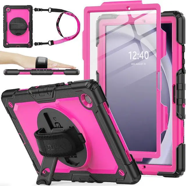 360° Hand Strap Shockproof Case for Galaxy Tab A9 Plus 11 inch, Pink+Black