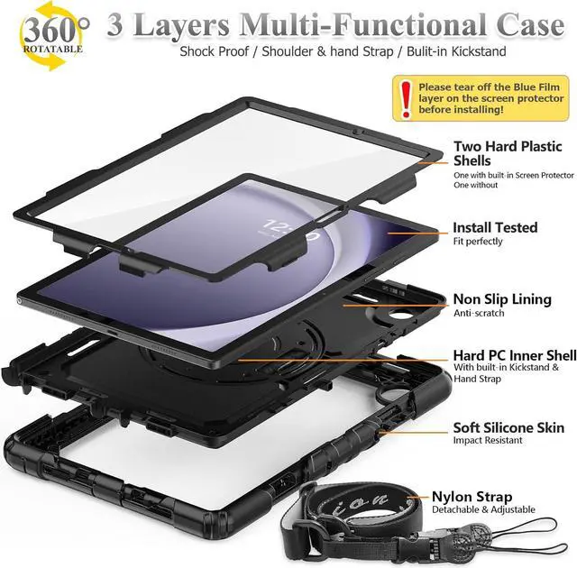 Material: The case for Galaxy Tab A9 2023 is made from high-grade thermoplastic polycarbonate and anti-skidding silicone built-in screen screen protector, to create the full-body protection for your tablet. Not only shockproof/durable but also comfortable hand feeling.