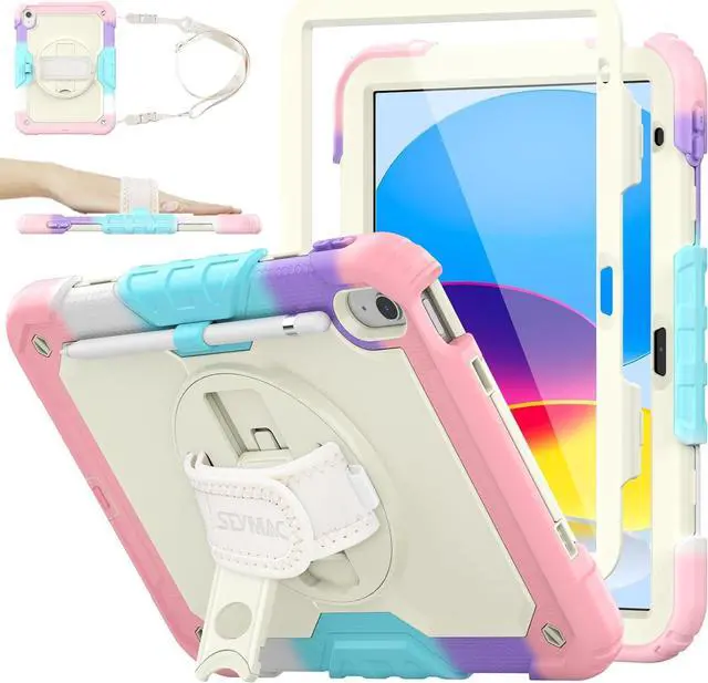 Soft Strap & Portable Shoulder Strap & Rotating Stand: Provide the protection and convenience when you play or work with Pad. Hang it anywhere for your entertainment, makes you using Pad 10th Generation case easily. 360 Degrees rotating Kickstand provides convenient viewing, with soft strap, easy to use your Pad in your outdoor travelling, working, gaming with kids.