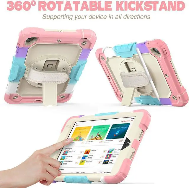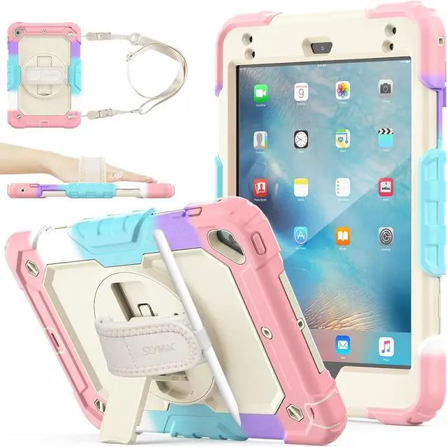 Soft Hand Strap & Portable Shoulder Strap & Rotating Stand: Provide the securest protection and more convenience when you play or work with case for Pad Mini 5/4. Hang it anywhere for your better entertainment, make your hands free. 360 Degree rotating Kickstand provides multi-angle viewing, with soft handle strap, easier to use your tablet in your outdoor travelling, working, gaming with kids.