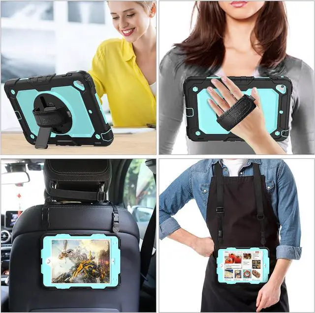Soft Hand Strap & Portable Shoulder Strap & Rotating Stand: Provide the securest protection and more convenience when you play or work with case for Pad Mini 5/4. Hang it anywhere for your better entertainment, make your hands free. 360 Degree rotating Kickstand provides multi-angle viewing, with soft handle strap, easier to use your tablet in your outdoor travelling, working, gaming with kids.