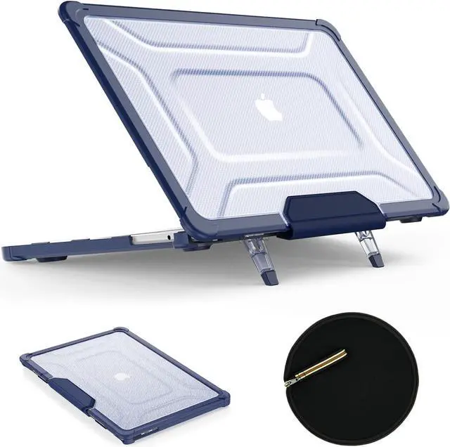MBook Air 13.6 inch Case (2022)[A2681 M2], Shock-Absorbing Protection Case with Folding Stand &Mouse Pad/Bag for MBook Air 13.6 (Navyblue)